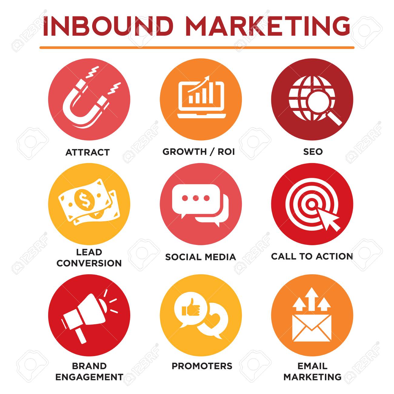 Inbound Marketing Vector Icons with CTA, Growth, SEO, etc